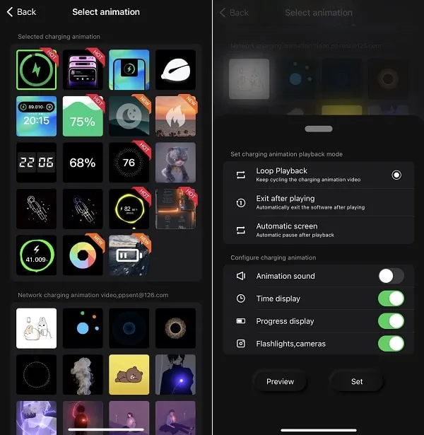 1. In the Select Animation screen, you will find so many charging animations with sound.