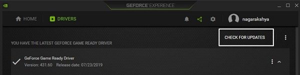 Install GeForce Experience on your Windows PC. Open it and then click on Drivers. Click on Check for Updates.
