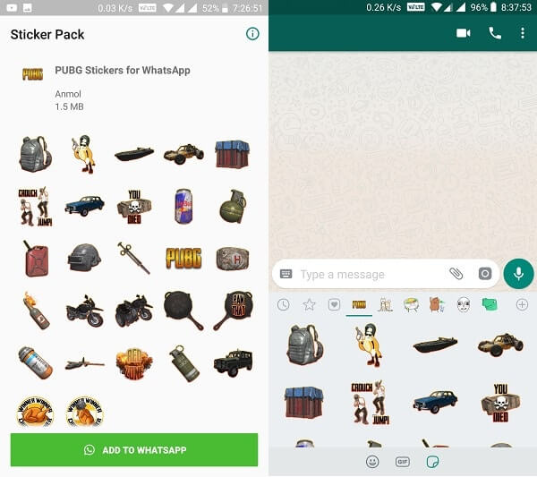Now, open WhatsApp. And, from stickers section you can send PUBG Stickers to your friends.