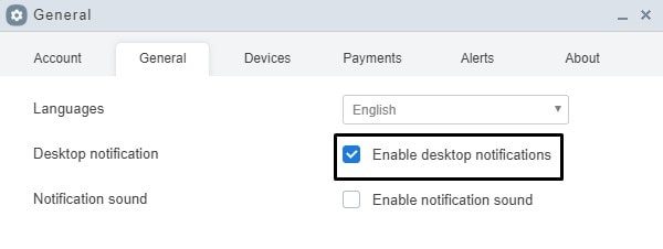 If Android’s Push Notification doesn’t come in the Browser. Then, Open AirDroid Web Settings. Click on the General tab and mark the “Enable desktop notifications” option.